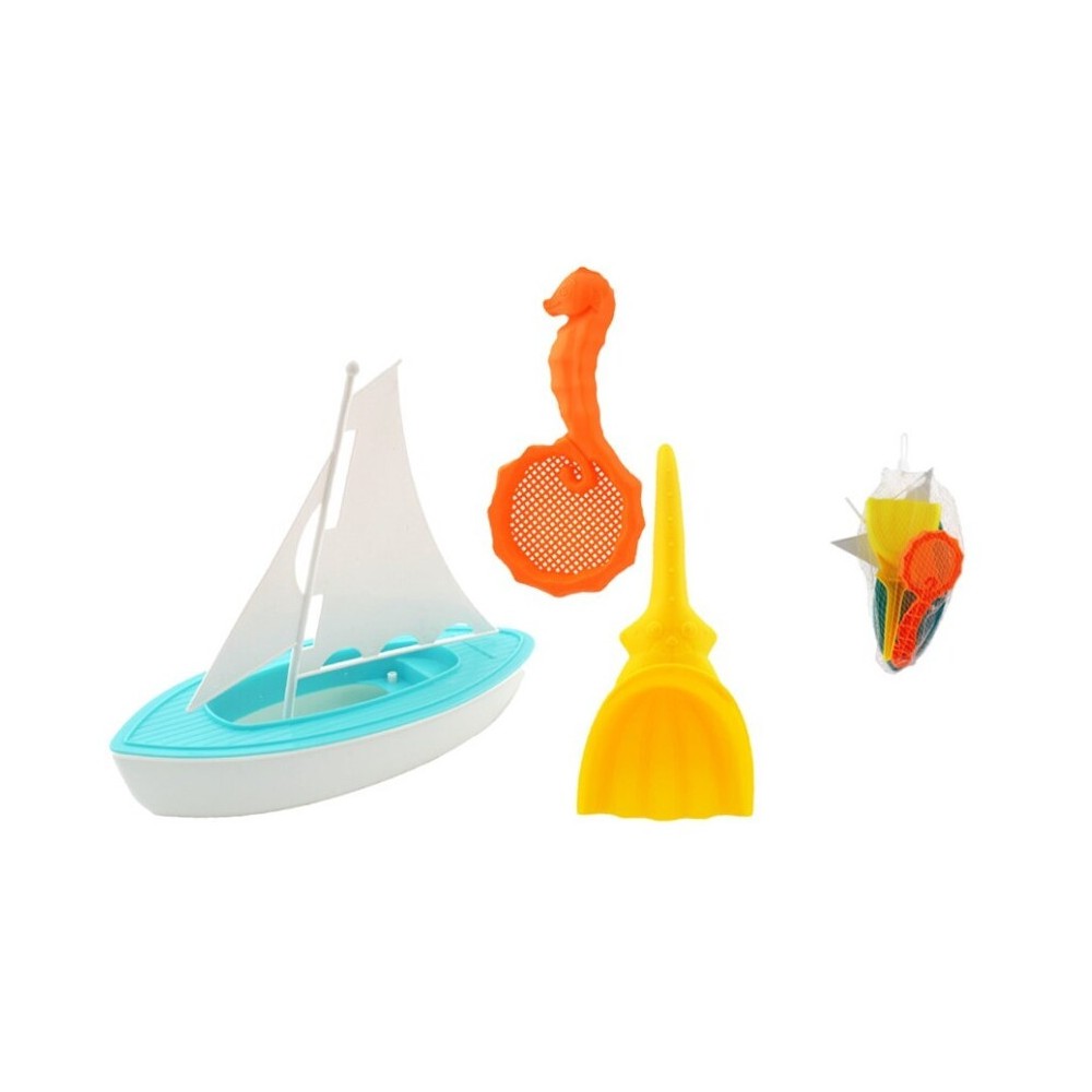 Contenido: 1 Velero, 1 Rastrillo (con forma de caballito de mar), 1 Pala.