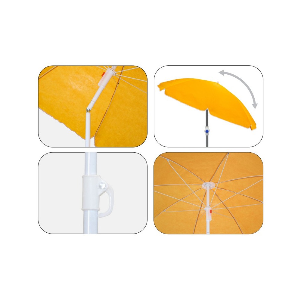 Sistema de Inclinación: Gracias a su cabezal articulado, podrás inclinar la sombrilla según la posición del sol sin tener que moverla de la arena.