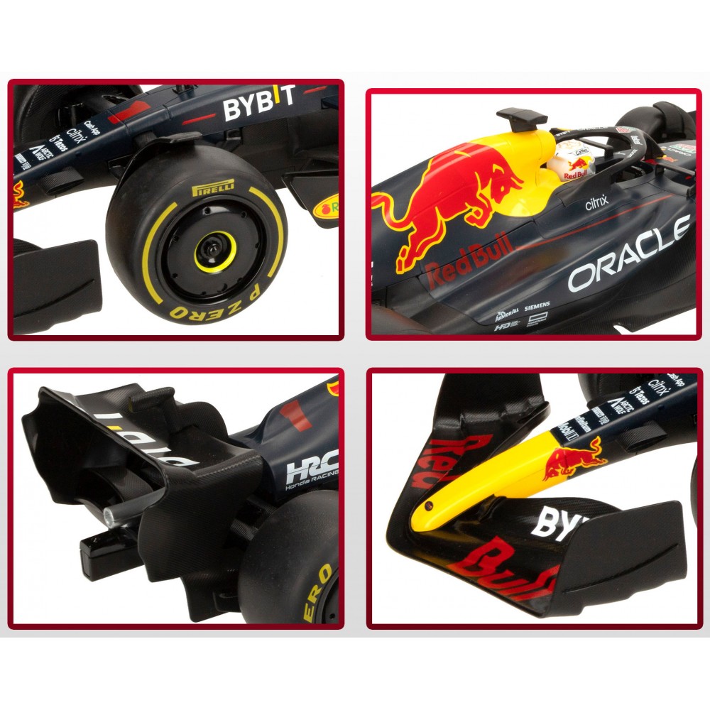 La Fórmula 1 es la cima del automovilismo y el Oracle Red Bull Racing RB18 es un icono moderno. Con este coche teledirigido a escala 1:12, RASTAR te trae toda la emoción de la parrilla de salida directamente a tu salón o terraza. No es solo un juguete, es una réplica detallada que captura la esencia del monoplaza ganador, con los colores vibrantes y el detallado de patrocinadores (Oracle, Bybit, TAG Heuer) del equipo campeón.