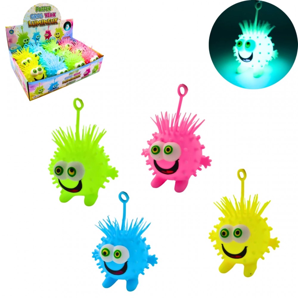 Pelota Antiestrés Puffer Ball Luminosa con Ojos Grandes | Juguete Sensorial con Luz LED
